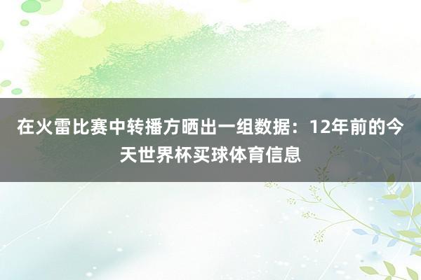 在火雷比赛中转播方晒出一组数据:12年前的今天世界杯买球体育信息